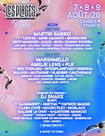 ALLOVER PRÉSENTE : LES PLAGES ELECTRONIQUES PASS 1 JOUR Ce pass te donne accès au festival à la journée que tu as sélectionnée, de 14h à 00h30. Attention aucune entrée ne sera acceptée après 23h30. Les Plages Électroniques fête ses 20 ans les 7, 8 et 9 août 2026. Une édition anniversaire ambitieuse, entièrement repensée, avec une première vague d’artistes d’exception : Vendredi 7 août : Martin Garrix, Nico Moreno, Mosimann Samedi 8 août : Amélie Lens, Marshmello, PLK & Vladimir Cauchemar Dimanche 9 août : DJ Snake & more to come... Cette année, le festival dévoile de nouvelles scènes, des espaces immersifs inédits et une expérience renforcée entre la plage, la mer et le Palais des Festivals. Les billets sont disponibles en quantité limitée et les tarifs évolueront rapidement. Réservez dès maintenant pour vivre cette édition qui marquera les 20 ans du festival.